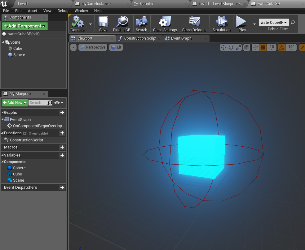 First I am making an atmospheric sound. By clicking on the Output node of the Sound Cue I can adjust the attenuation settings of the sound (the range, how far a player can hear it for)