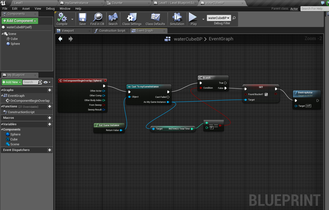 Also importantly I need this sound to loop. I click on the Sound Wave node and click Loop on the left hand side (you can’t see too well because of the comment window over the loop boolean).
